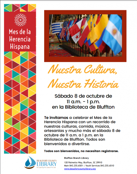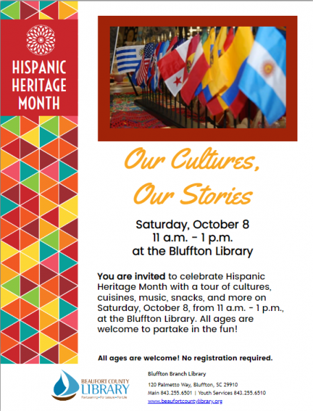 - Hispanic Heritage Month Celebrations: Our Cultures, Our Stories at Bluffton, 11am