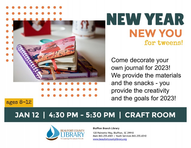 - D.I.Y. Journals for Tweens at Bluffton, 4:30pm [see details below]