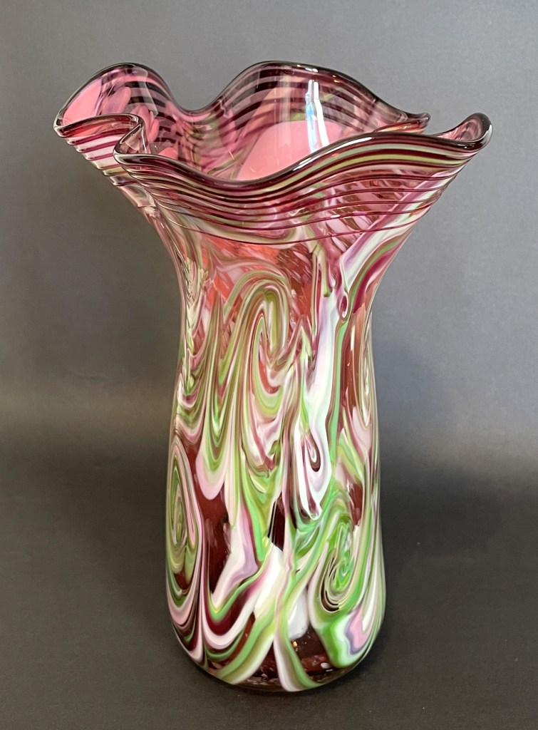 14. Unique hand brown glass vase by local artist George Watson. This vase is about 8 inches tall. Value $235. Starting bid $35