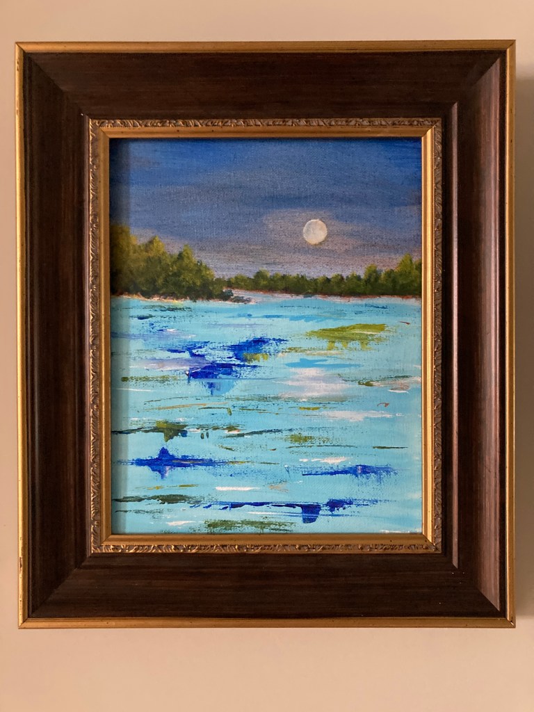 19. Original oil painting on canvas, 12” by 14”, beautifully executed and framed by local artist Jack Beasley. Jack has been painting and teaching for over 50 years. Starting bid $245