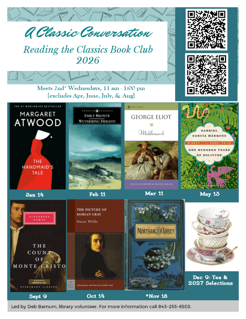 3. Riveting Reads: meets 2nd Saturday of most months, 3-4 pm